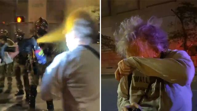 据美国媒体报道,当地时间7月25日晚,在美国波特兰市的抗议活动现场,一名如今担任摄影记者的越战老兵在和平抗议时,遭联邦边境执法人员用胡椒喷雾近距离直喷面部。