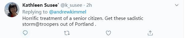“他们这样对待一个老人,真是令人毛骨悚然。应该把这些凶残的边境巡逻警察赶出波特兰。”