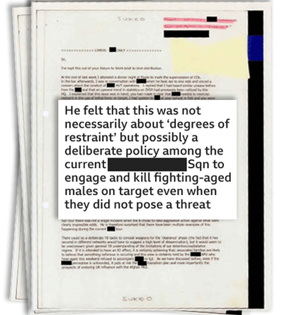 针对SAS的案件,英国国防部保存了大量的电子邮件,比如,一名英军提到那些夜袭行动时,把它称作是“最近的那些屠杀”。在特种部队总部任职的一名高级军管,在向英军总指挥部呈送的报告中写道,“英军特种部队的某些人缺乏应有的克制,他们采取激进手段,故意杀戮在当兵年龄段的阿富汗男子,哪怕他们对英军没有表现出威胁。”报告建议英军对此展开调查,及时制止战争罪行的蔓延。