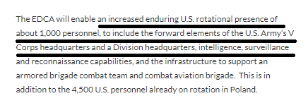 按照该网站的说法,波兰同意出资建设的基础设施包括:美陆军第五军司令部前沿指挥所、一个美军师司令部、在波莫瑞地区德拉夫斯科共用的战斗训练中心等训练场所、空军MQ-9“死神”无人机编队所需设施、支持部队进出波兰所需航空口岸、支持特种部队海陆空行动的设施,以及一支装甲旅作战队、一个航空战斗旅和一个战斗后勤支援营所需基础设施。