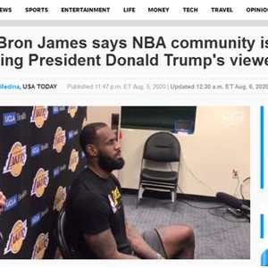 “这句话听起来太荒谬了,以至于洛杉矶湖人队球星勒布朗•詹姆斯看起来更像是被逗乐、而不是被激怒了。”《今日美国》说。
