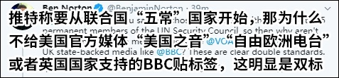目前,这一规定在联合国安理会“五常”国家的相关账号上首先应用,推特计划未来推广至更多国家。然而不少外国网民已经识破其“双标”:“五常”只有中、俄的媒体账号被针对,而美、英、法的一批账号却“无事发生”。