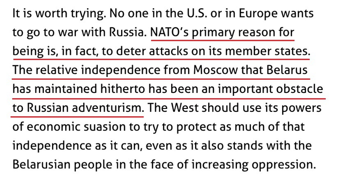 北约存在的重要意义,就是威慑俄罗斯对北约联盟成员国的进攻。报道还指出,白俄罗斯到目前为止一直保持一个相对独立于俄罗斯的状态。