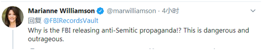 反犹主义研究员大卫·科利尔(David Collier)指责FBI:“绝对是疯了。FBI在没有任何提示的情况下分享这本议定书。看起来他们像是在推广它。通常他们(的推文)会被一些人转发。这条推文在网上疯传。太不负责任了。”↓