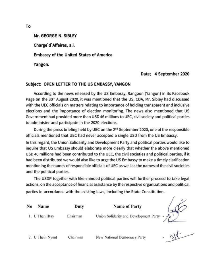 原标题:缅甸25家政党联合发表公开信 质疑美国所宣称的大选援助资金去向