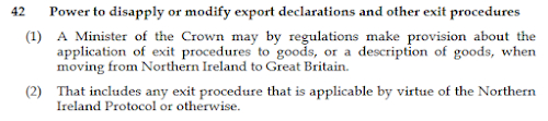 《内部市场法案》第42条规定,英国内阁成员享有废止或修改与货物出口申报相关的权力,包括制定货物出口程序的规定(含北爱尔兰的进出口事宜)以及与《北爱尔兰议定书》相关的规定。《法案》第45条再次强调了,即使《法案》内容与任何有关的国际或国内法律(包括《脱欧协议》与《北爱尔兰议定书》的任何规定)不兼容或不一致,这些条款仍然有效。由于这些在实践层面的规定,英国无论能否与欧盟签订“脱欧”协议,《内部市场法案》的优先级都要高于与欧盟签订的《北爱尔兰议定书》。