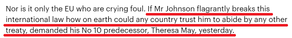 △英国前首相特雷莎·梅对《内部市场法案》的反对(图片来源:英国《每日邮报》)