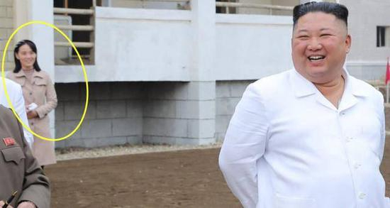 从现场照片中可见,身穿米色风衣的金与正站在哥哥身后不远处,面露笑容。