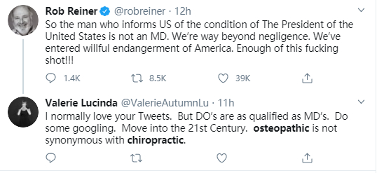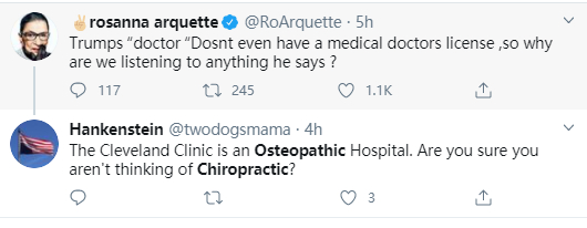 但因为两者都涉及“整骨”,所以就连不太了解其中门路的美国人,也常常会将两个群体搞混。实际上,就在康利的这个“整骨医学”的履历被美国媒体曝光后,一些反感特朗普的美国网民就错误地将他当成了“整脊医生”,进而对特朗普和白宫展开批判。但一些了解这两者区别的网民也在纠正这种误会。