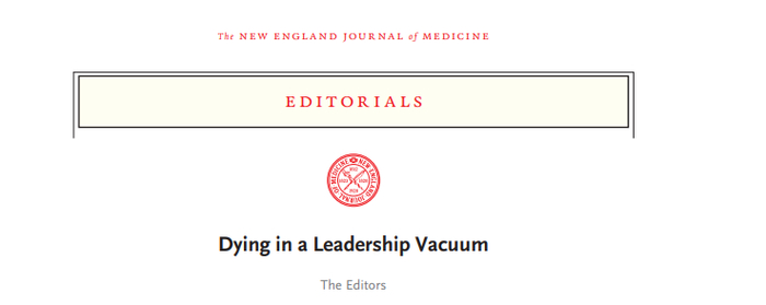 这篇名为《在领导力真空中死去》的文章指出,美国政府的糟糕应对,让一场公共卫生危机一步步演变成为一出“悲剧”。