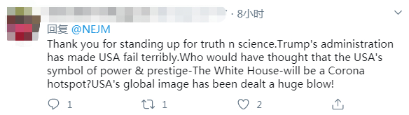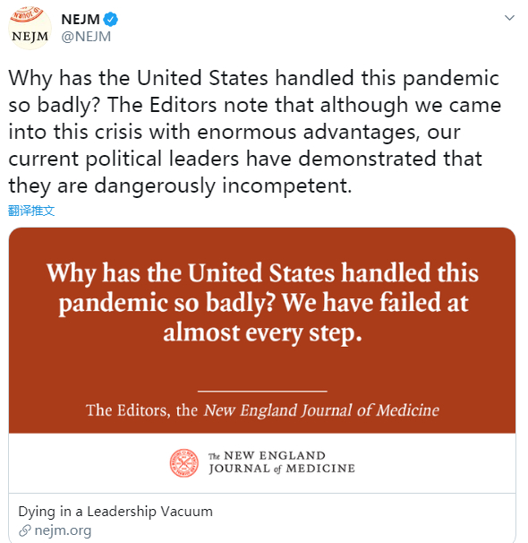 这篇文章刊出后,在海外社交媒体引发热议。有网友表示,《新英格兰医学杂志》此前几乎从未涉足过政治领域,而此次刊登联名社论进行反思和呼吁,足以证明特朗普政府在新冠疫情应对上的糟糕程度有多令人唏嘘。