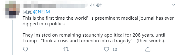 值得一提的是,在过去的200多年中,《新英格兰医学杂志》作为在世界医疗领域享誉盛名的顶级学术期刊,从未涉足过政治领域或是表明过政治立场。