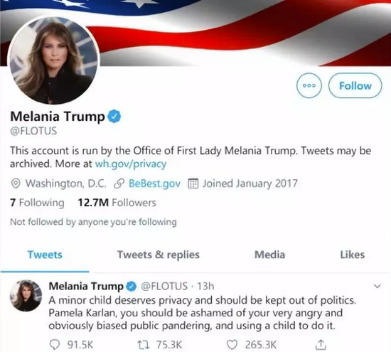 这一次,亲妈梅拉尼娅坐不住了。她在网上反驳卡兰的做法时说:“一个未成年人应该享有隐私,不该被卷入到政治中去。你应该为自己暴躁和明显偏颇的言论,以及利用一个孩子来表达自己的观点感到羞耻。”↓↓