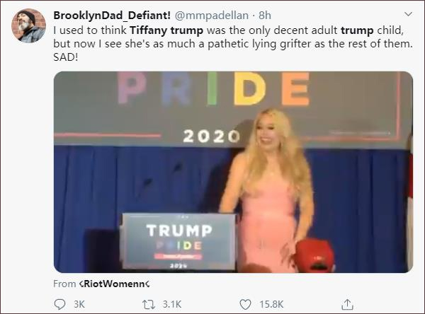 “我以前以为蒂凡尼是特朗普孩子里惟一一个体面的,但我现在发现她和其他特朗普子女一样,都是可悲的撒谎精。悲哀!”一网民表示。