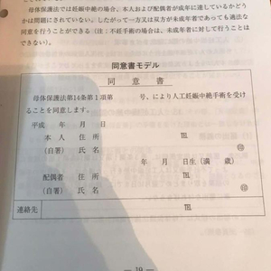 然而《母体保护法》规定,堕胎“需要得到本人和配偶的同意”,实际实施时,医疗机关会通过《同意书》来征得同意。
