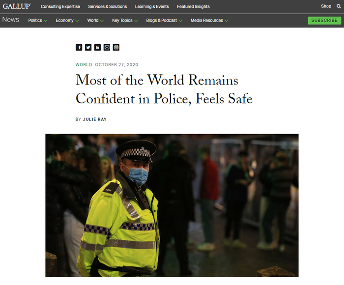 2019全球法律与秩序指数公布:中国位列第三,美国人对警察信任正在下降