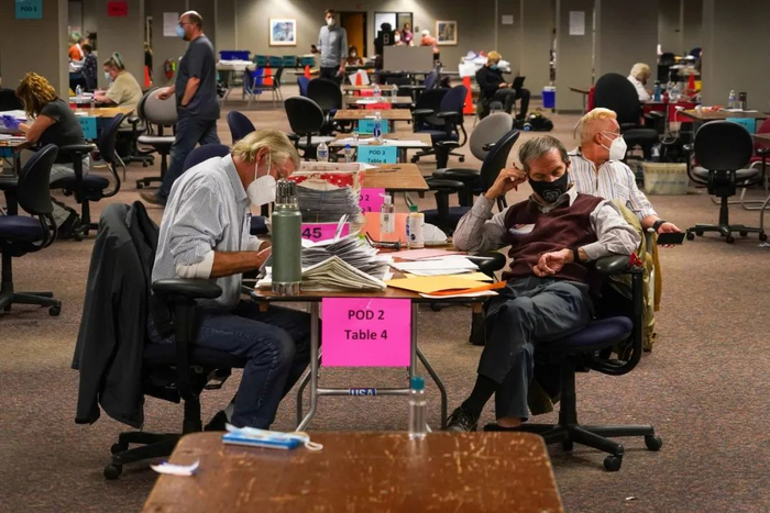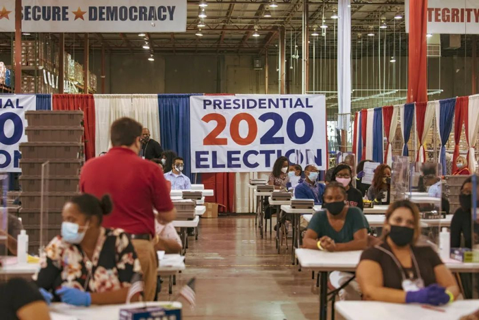威斯康星州密尔沃基地区的工作人员正在计算选票。©Chang W。 Lee