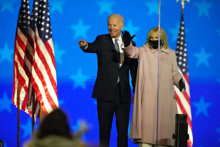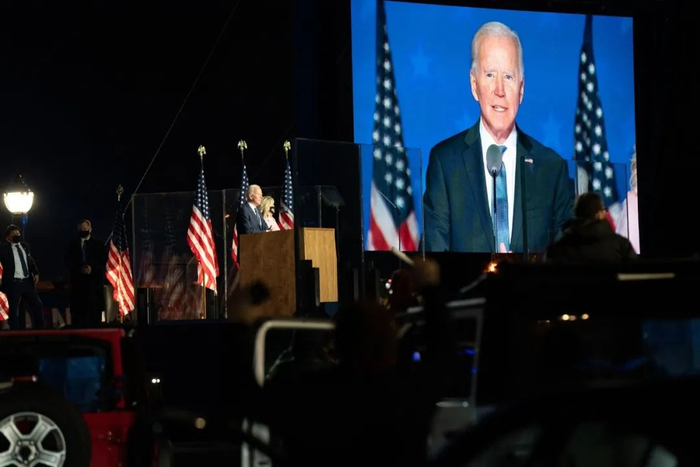 大选之夜,拜登在特拉华州的威明顿发表演讲。© Ruth Fremson