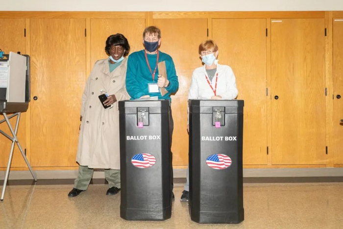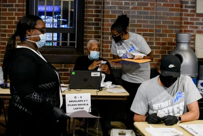 工作人员在密歇根州底特律福特菲尔德的计票站。©Brittany Greeson
