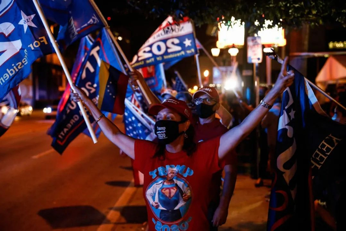 在迈阿密小哈瓦那附近的共和党支持者在上街游行。特朗普成功拉拢了该市的西班牙裔选民。© Scott McIntyre