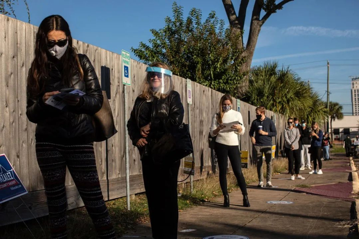 大选之日得克萨斯州排队投票的人们。在该州,民主党人希望增加众议院成员以巩固其多数席位的优势。©Tamir Kalifa