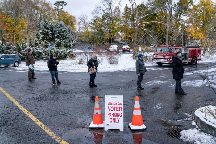 缅因州的Camden地区,来到现场投票的人们正在排队投票。©Sarah Rice