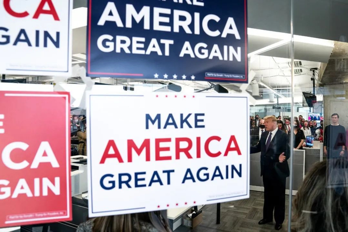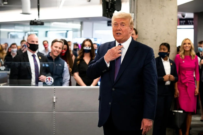 特朗普周二访问了他在弗吉尼亚州阿灵顿的竞选总部,在此之前特朗普公开质疑了许多个州的缺席投票规则。© Anna Moneymaker