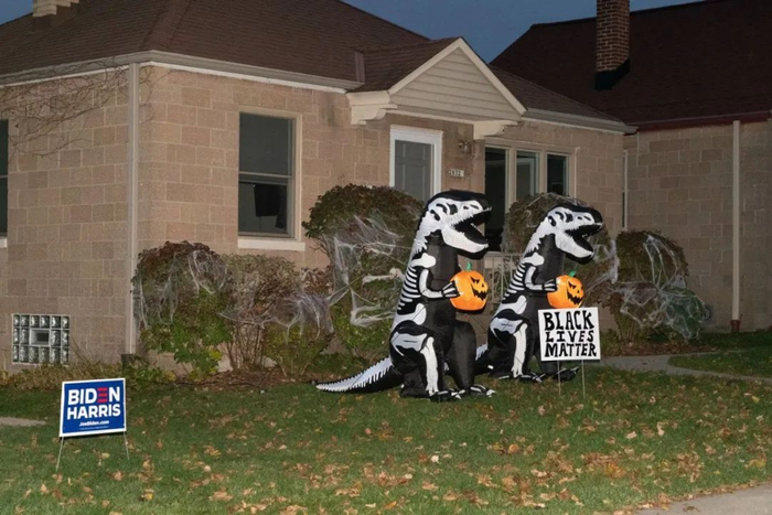 宾夕法尼亚州的奥利芬特地区,特朗普支持者在家门前树立的标语。“拜登将摧毁你的邻居和你的美国梦,”特朗普7月底在Twitter上警告说。这个主题经常引起美国部分郊区人民的共鸣。© Peter van Agtmael