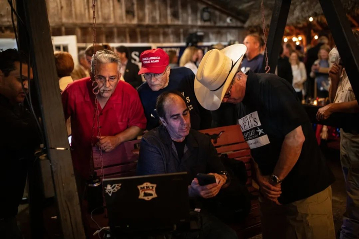 人们在德克萨斯州里士满市自由厅的观看大选之夜的投票情况。©Tamir Kalifa
