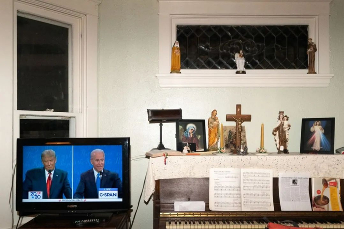 共和党支持者玛吉·文迪蒂看了总统候选人最终辩论,认为拜登是个伪君子。“我不明白他是如何做到作为一个天主教徒的同时却支持堕胎,所有生命都是神圣的。对于我们这些天主教徒来说,这是最重要的事情。” © Peter van Agtmael