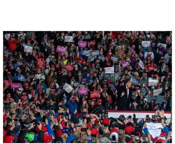 在大选之日前夕,特朗普在宾夕法尼亚州伊利市举行竞选集会。© Peter van Agtmael
