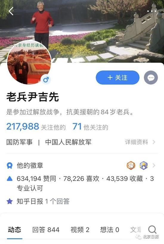 他于79岁开始学习使用电脑,在网上分享自己参加解放战争、朝鲜战争的经历,至今已有近十年。他的讲述吸引了大量网友的关注,截至记者发稿,光是在知乎上,尹吉先老人就曾回答过844次问题,获得“赞同+喜欢+收藏”超75万次,拥有21余万关注者。