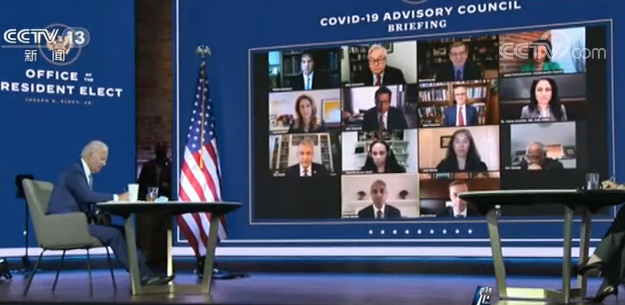 11月9号,拜登团队宣布组建一个13人的新冠肺炎疫情工作组,并与工作组举行了视频会议。拜登团队的“过渡网站”上还列出了“抗疫”计划,包括测试、疫苗、全民戴口罩等。