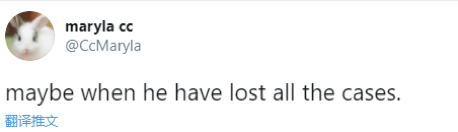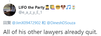 有些网友认为,也许要等到特朗普输掉所有官司,等他剩下的所有律师辞职,才能让他离开。↓
