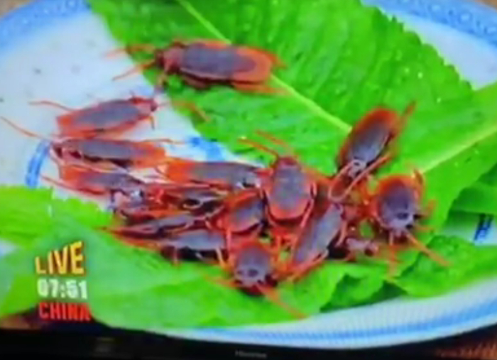 图为华人网民发帖对这一节目表示震惊,以及节目中“武则天吃蟑螂”的场景