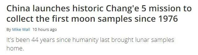 全球知名的天文学网站“太空网”(space.com)11月24日发表题为《中国嫦娥五号探测器成功发射,将自1976年以来首次搜集月球样本》的文章。