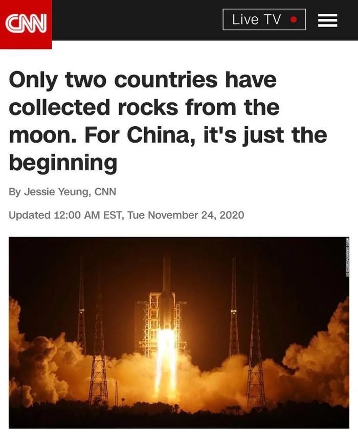 美国有线电视新闻网(CNN)11月24日报道,此前只有美国和苏联两个国家收集了月球上的岩石。中国将成为第三个获得月球样本的国家。而“嫦娥五号”任务,对中国来说,只是个开始。