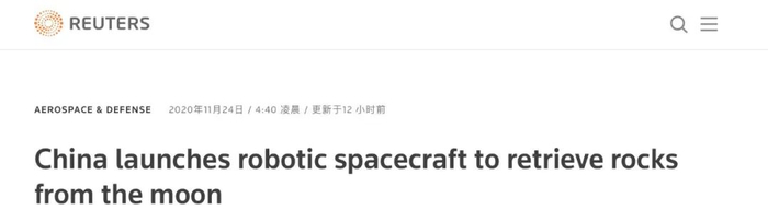 英国《卫报》发表题为《中国完成“嫦娥五号”发射任务,将从月球带回岩石》的报道,同样聚焦“这将是自上世纪70年代以来首次有国家尝试从月球带回样本”的重大意义。
