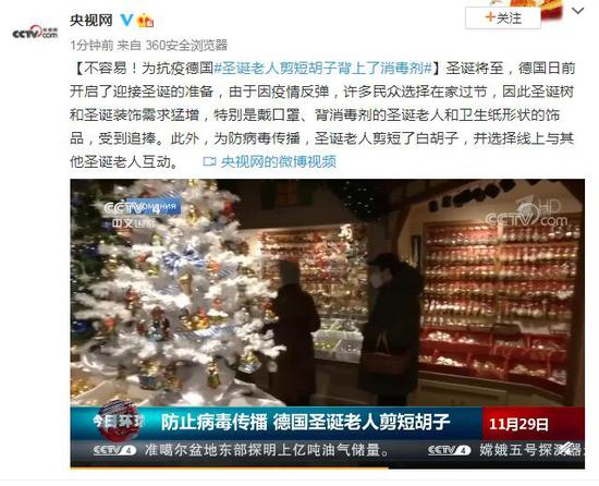 原标题:不容易!为抗疫德国圣诞老人剪短胡子背上了消毒剂