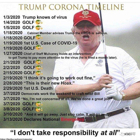 CNN还不忘补刀,先公布了特朗普打高尔夫的照片。阳光,草地,温暖的天气,红帽、白衫,总统很轻松,很悠闲。