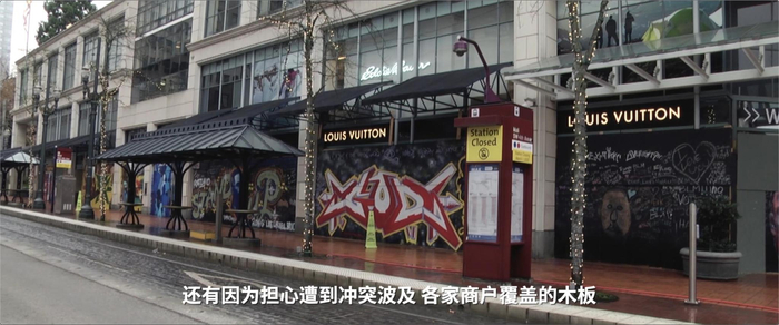 央视记者 徐德智:这里是波特兰市中心的一个购物街区,我身后的节假日彩灯已经挂在了树上,即便是白天的时候也是亮着的。但在距离抗议已经过去了几个月,距离美国总统选举也过去了几周之后,我们可以看到,很多的商家仍然用木板把橱窗和门给包裹起来。在美国每年最重要的购物季,购物的人屈指可数。