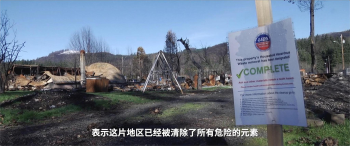 央视记者 徐德智:虽然当地的管理者已经在这片土地的入口处插上了标签,表示这片地区已经被清除了所有危险的元素。但实际上,即便在山火肆虐过去了几个月之后,这里的破坏仍然没有进行修复。而对于这片区域的所有者来讲,要想彻底重建这一片区域恐怕要花上非常长的时间。