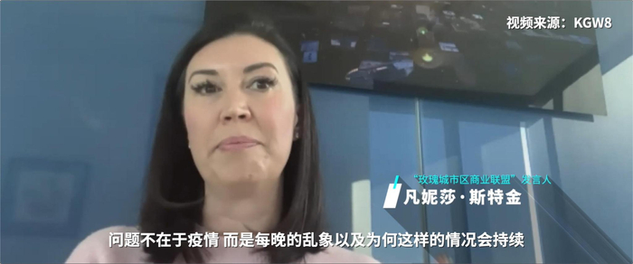 波特兰“玫瑰城市区商业联盟”发言人 凡妮莎·斯特金:不幸的是,这些事经常发生。问题不在于新冠肺炎疫情,而是每晚的乱象和为何这样的情况会持续,以及我们的地区检察官没能及时进行起诉。