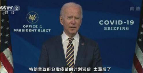 对于美国缓慢的疫苗接种进度,美国当选总统拜登公开指责特朗普政府“出工不出力”。拜登表示,按照当前的速度,美国全民接种疫苗需要花几年而不是特朗普所说的“几个月”时间。