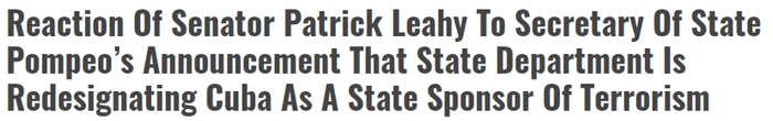 美国民主党参议员帕特里克·莱希也发表声明,批评“(支持恐怖主义国家)这种带有明显政治色彩的称谓,是对可信和客观标准的嘲笑”,并指责蓬佩奥试图在离任之前“有意为继任者尽可能制造困难”。