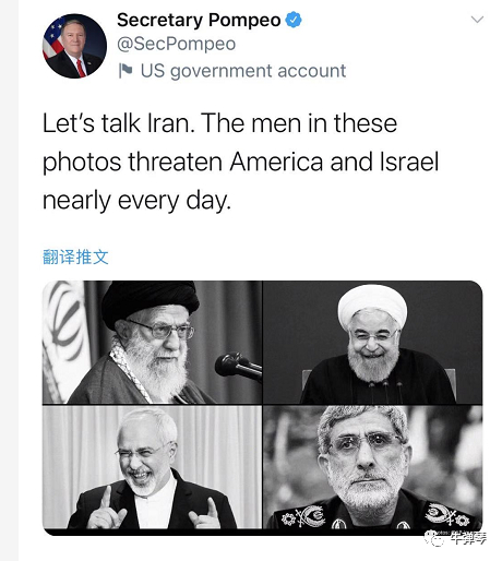 闲着的蓬佩奥,只能在国内发发推了,很不幸,第三个回合,伊朗又躺枪了。因为他最新的一条,是四图一句话: