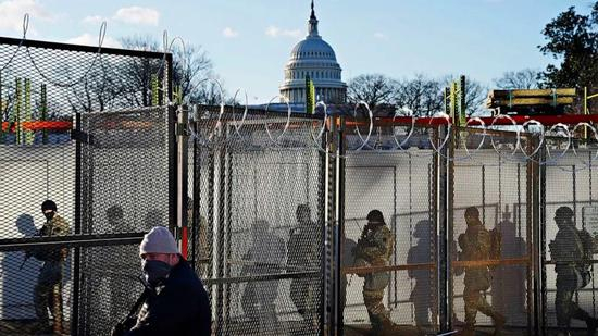 在紧张程度堪比战乱地区的华盛顿特区,25000名国民警卫队值守。这不仅是往届就职典礼的三倍之多,也是自1861年美国内战爆发以来,军事化程度最高的就职典礼。