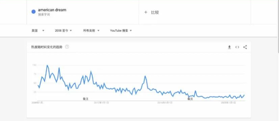 通过搜索引擎,谭主发现了一个有意思的现象,“美国梦”一词的热度在美国正在呈现下降趋势。