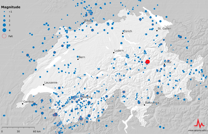 原标题:瑞士及周边地区2020年发生了1400次地震 高于正常水平