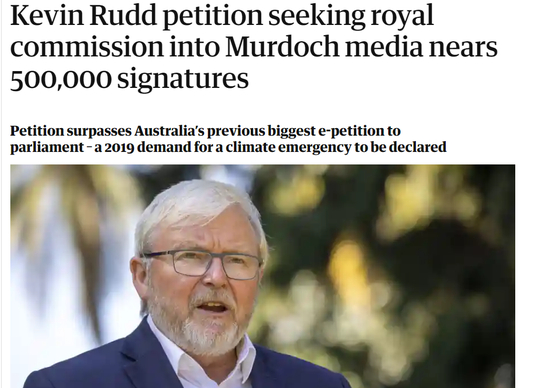 可截至目前,这个由西方右翼保守派媒体大亨默多克控制的大型新闻集团,并没有因为其在疫情中屡屡煽动种族主义的言论而遭到法律的惩罚,付出任何其应负的代价——尽管澳大利亚前总理陆克文在去年底发起了呼吁澳大利亚政府调查这个恶臭的媒体集团的网络请愿活动,并在去年11月时就已经获得了超过50万人的支持。
